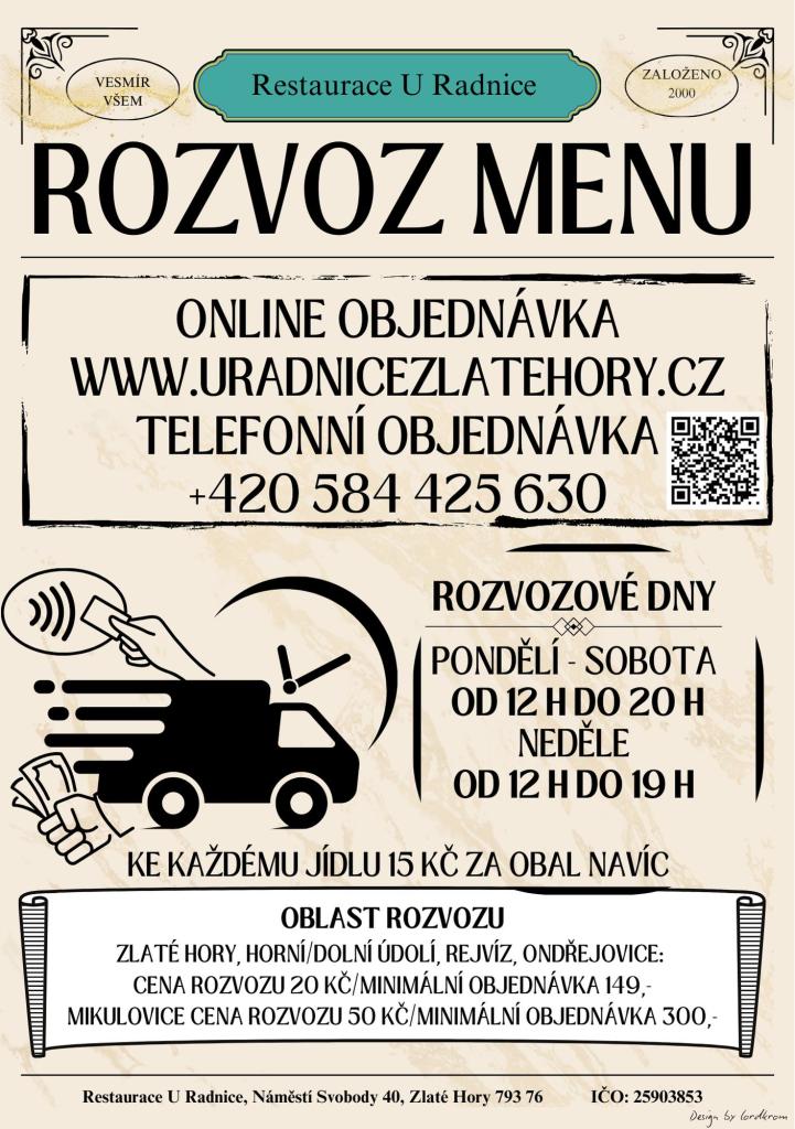 Objednávejte telefonicky na čísle +420 584 425 630 nebo online na webu www.uradnicezlatehory.cz