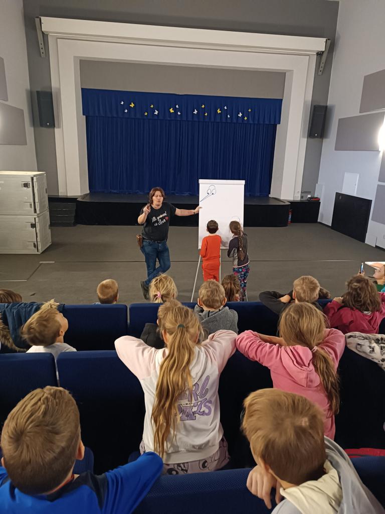 Úžasné vystoupení pro děti ze ZŠ plné čtení, smíchu, kreslení a zpěvu s Markem Šolmesem Srazilem. Děkujeme za báječné vystoupení, za knihy pro děti a za krásné gesto Marka Šolmese Srazila, který vystoupil bez nároku na honorář.
